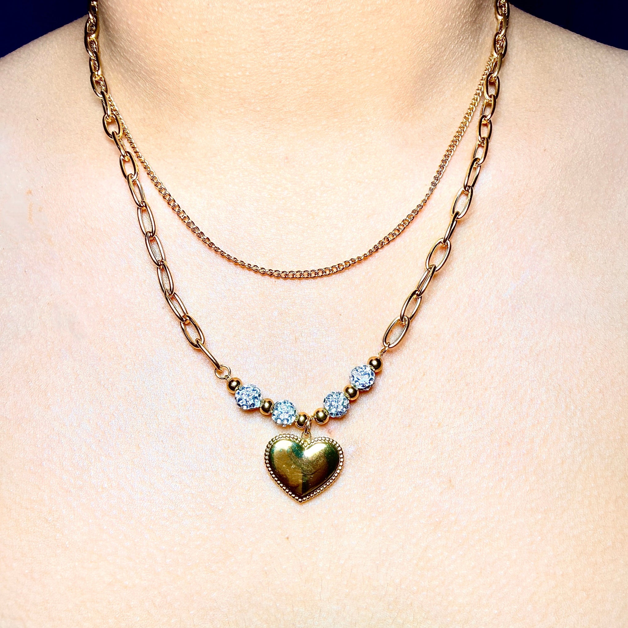 Collar dorado de doble cadena con dije de corazon